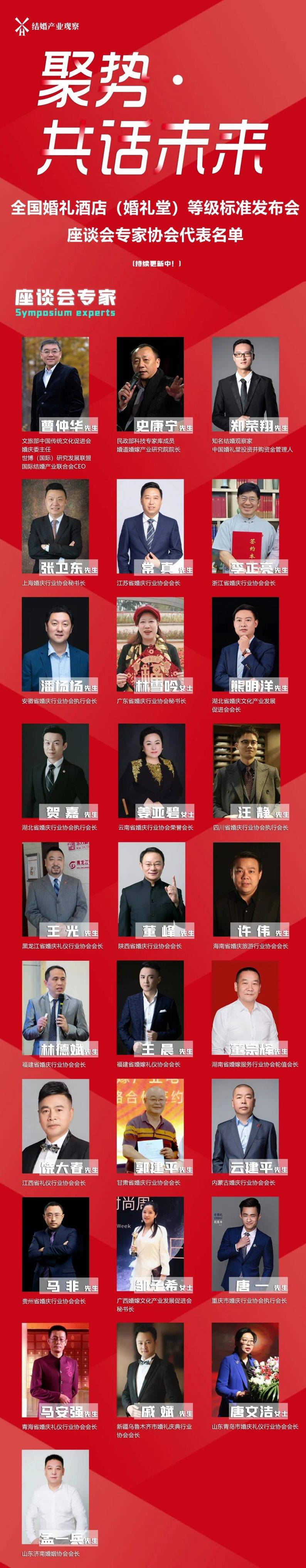 在发展大会上,将会重磅推出首个政府部门认可的全国婚礼酒店(婚礼堂)等级标准,组委会还特别邀请了全国各省市协会会长/秘书长参加,大家建言献策,范围之广是近年来罕见!