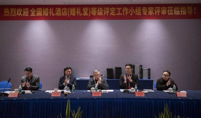 专家评审组召开会议深入研究和商讨,根据《全国婚礼酒店(婚礼堂)等级评定工作》评分细则,对酒店的现场审查内容逐一核对要求,并提出了建设性意见。