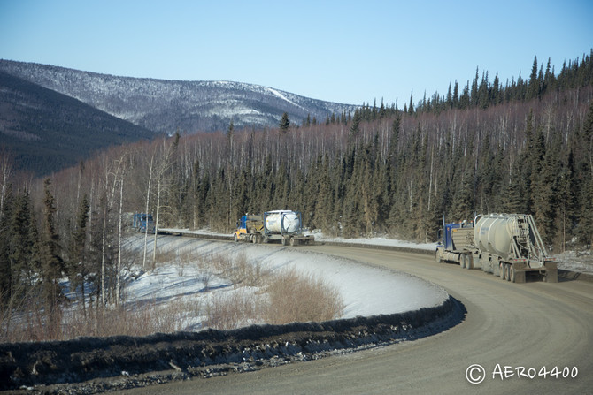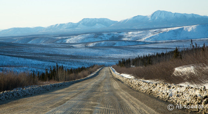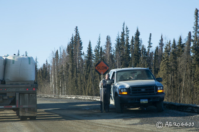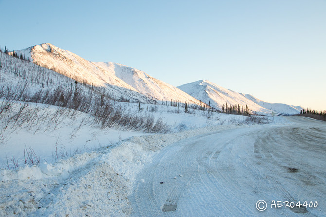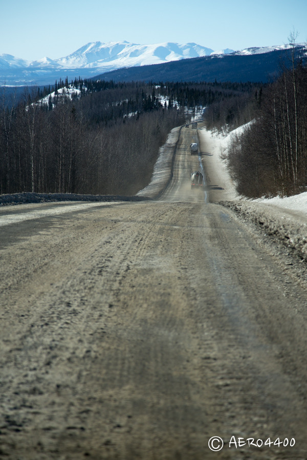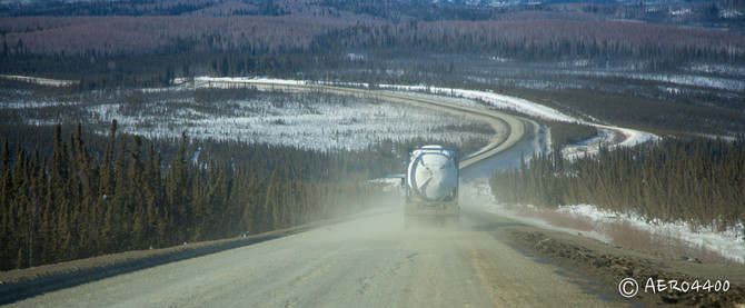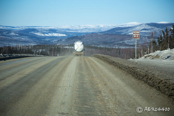 刚进入道尔顿高速就开始是土路,路上疙疙瘩瘩的全是冻在地上的石头。天气不算太冷,有些地方融化成了泥,反正基本就是在冰泥路面上开。
