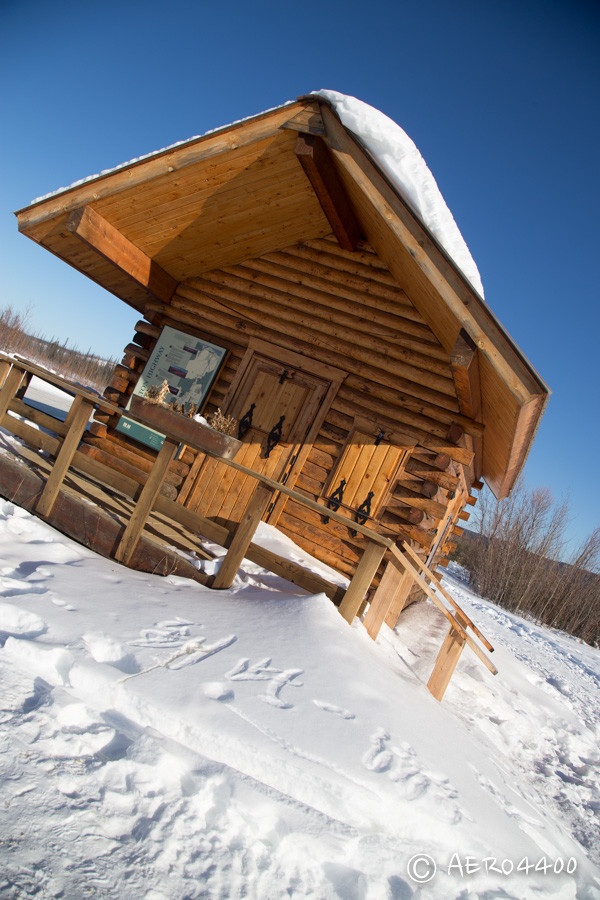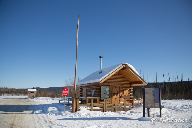 北极圈位于道尔顿高速115英里标识附近,路边有明显的公园标志。进去后就只有一个木牌子显示这里是北极圈,还有一些文字介绍,有些让人失望呢。 从这里开始向北,就属于北极圈范围了。在这里,每年的6月20和21号有极昼现象,12月21和 22号有极夜现象,越往北极昼极夜出现的时间越长。从这里继续沿小路开,有一个露营地,冬天一定是不开放的,夏天倒是可以尝试。