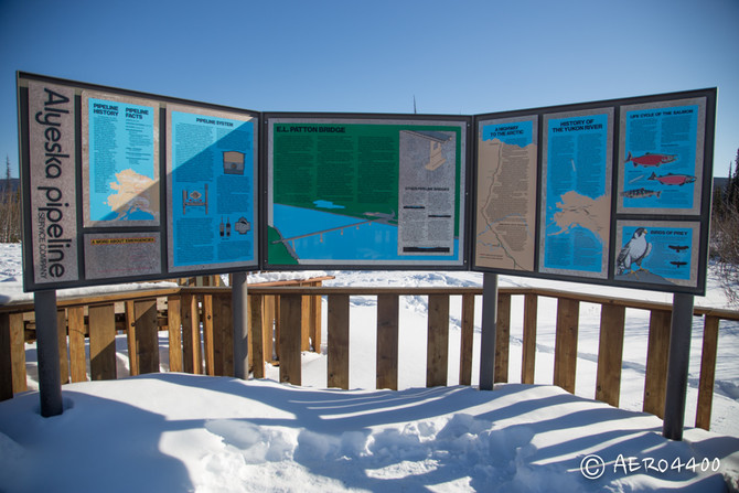 育空河(Yukon River)是沿途第一个主要景点,这里有专门的信息牌,还有停车场和卫生间。沿途自驾卫生间真的非常不好找,建议你看到了就用一下,下一个真的不知道在哪儿了。你可以在这里看到沿途一直陪伴左右的石油运输管道。这条天然气管道桥横跨在长达1875英里的育空河上,是阿拉斯加地区唯一横跨该河的桥梁。