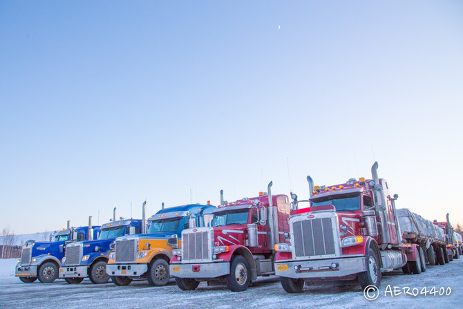 到达175英里处就到达了我们的目的地Coldfoot,这里真心算不上个小镇。从高速向右拐进去就是一大片加油站,加油站内停着排列整齐的货车。这些货车颜色都十分显眼,相当有震撼力。