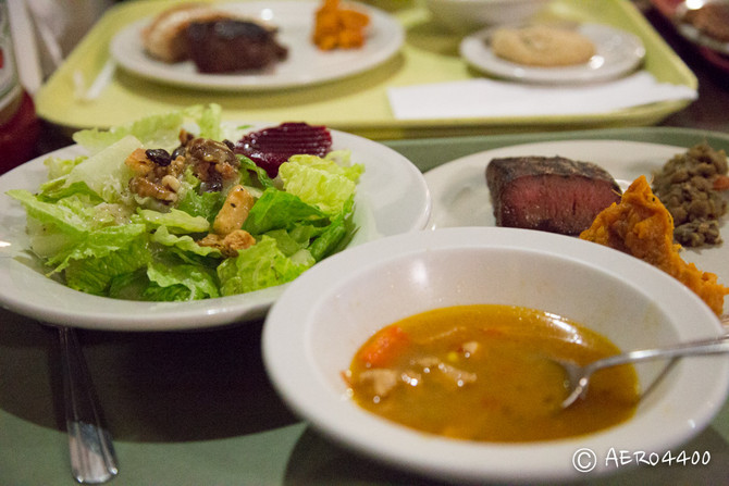 我们现在这里大吃了一顿。这里的餐饮都是自助形式的,没想到如此偏僻的地方伙食这么好。晚餐一个人21.95刀,我们第二晚住在边上的coldfoot camp,朋友夜里饿了说再去买一顿吃,结果工作人员说,只要晚上买过了就可以随时过来继续吃,这服务简直了。