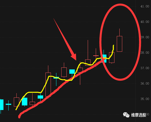 下图短线案例:招商银行600036。近几天呈现45度角上扬。