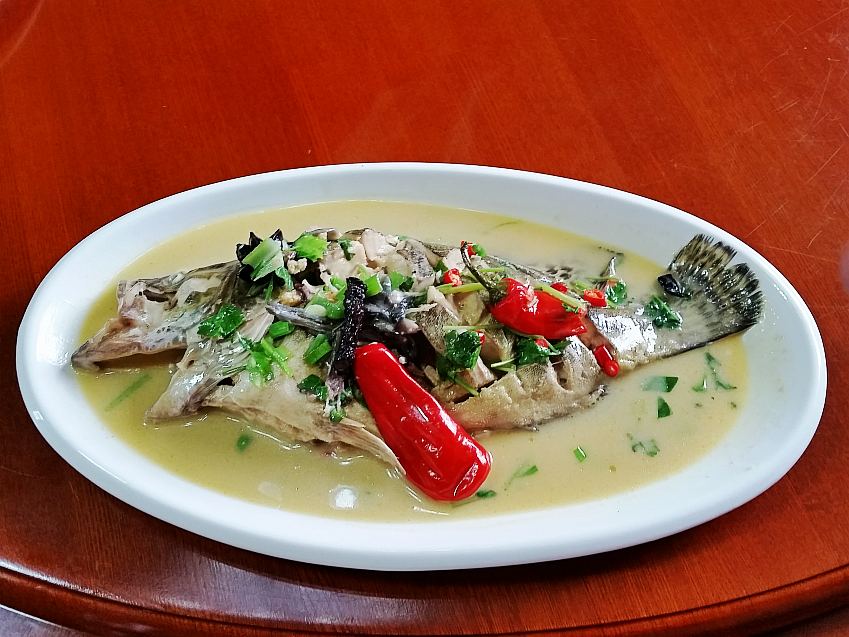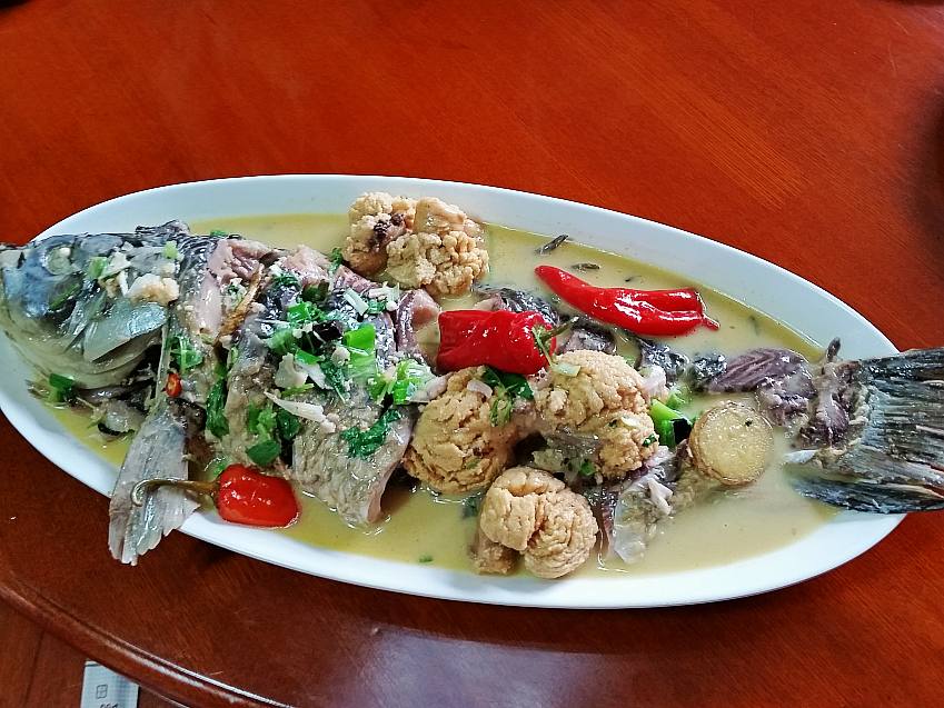 【清蒸鲤鱼】另一半鲤鱼或清蒸或红烧,这条鱼很大,鱼子就好多,肉质鲜嫩,味道鲜美。