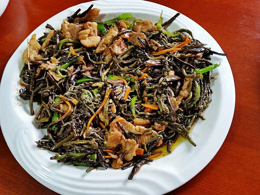 【蕨菜炒肉丝】东北的山野菜,也是东北的特色菜,这道菜一般饭店都有,清香味浓,开胃下饭。