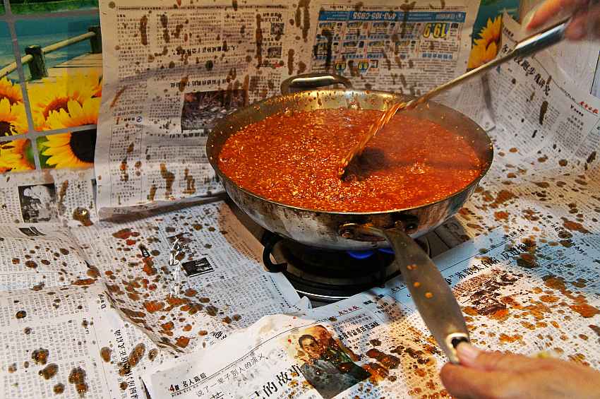 2、炒制辣椒酱用任何植物油都可以,注意保护好自己,防止烫伤,炒到无水分即可。