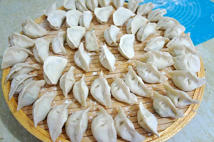 6、包饺子,大家基本都会哈,饧好的面团揉成长条,揪成大小均等的剂子,擀成薄皮,包上馅,两手对捏就成饺子了,包饺子其实真的很简单;
