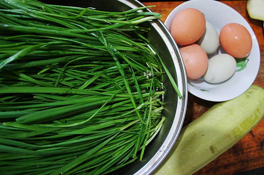 来大庆的姐姐家两天了,各种吃吃吃,也是腻了,眼看着要变天,所谓一场秋雨一场寒,北方再下雨必然下霜上冻,各种新鲜蔬菜都会变味,那就不好吃啦,赶紧秋收。姐姐刚刚从菜园子采摘了一捆韭菜,邻居送来1个西葫芦,我就加上几个鸡蛋,这几种食材简单搭配在一起包个饺子,其他什么菜都没做,没想到煮好饺子那可是上一盘光一盘的节奏,还真的有没吃够的感觉。