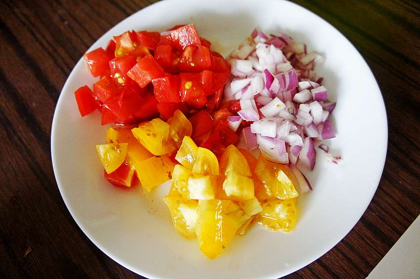 9、番茄切片码盘,最后浇上炒好的番茄酱;