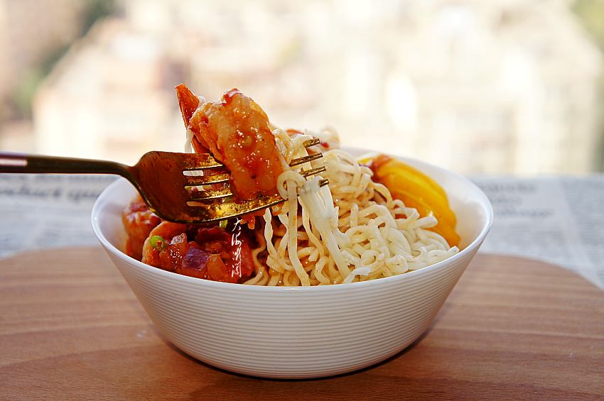 节前出游加上过节走亲戚,一直在外东奔西走,回来后刚好家里来了小朋友,立马拿出新良的新品,煮给小朋友吃,这面煮起来非常简单快手,分分钟就煮好面。第一次吃这种玉米波纹面,又是做给孩子吃,特意加了番茄和凤尾虾,不但颜色漂亮,酸甜适口,味道超级鲜美,小朋友特别喜欢,煮了两份面,差点被一扫光,好吃到停不下来。剩下没煮的面,直接送给小朋友带回家。而且这面可是营养丰富,番茄有健胃消食,生津止渴,润肠通便,清热解毒的作用。大虾肉质肥嫩鲜美,又没有骨刺,特别适合老人孩子吃。虾肉历来被认为既是美味,又是滋补壮阳之妙品。虾的营养价值很高,全身是宝。虾脑,含有人体必需的氨基酸、脑磷脂等营养成分。虾肉含有大量蛋白质、碳水化合物;虾皮含有虾红素、钙、磷、钾、铜等多种人类所需的营养成分。钙是脑代谢不可缺少的重要物质,因此常食虾有健脑的作用,同时钙也能增加眼球壁的弹力,防治近视的发生与发展。铜等矿物质形成与免疫机能有关的酵素,还能提高免疫力。