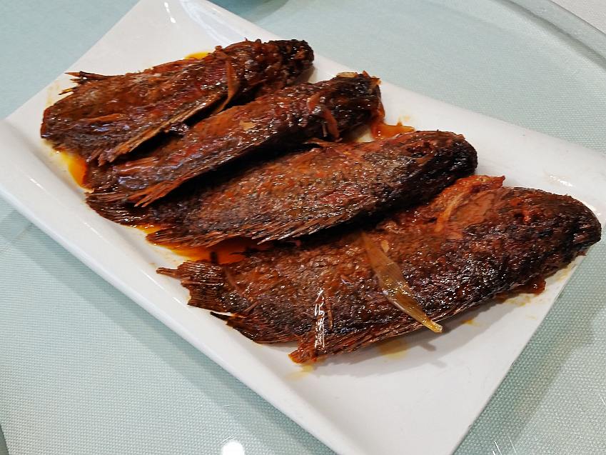 【酥鲫鱼】这鲫鱼炖的特别入味,有点酸甜,还有些咸,味道极其鲜美,火候恰到好处,鱼刺都有些酥烂。