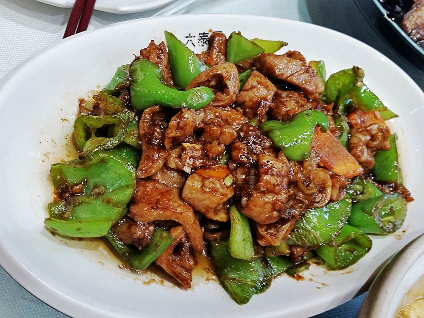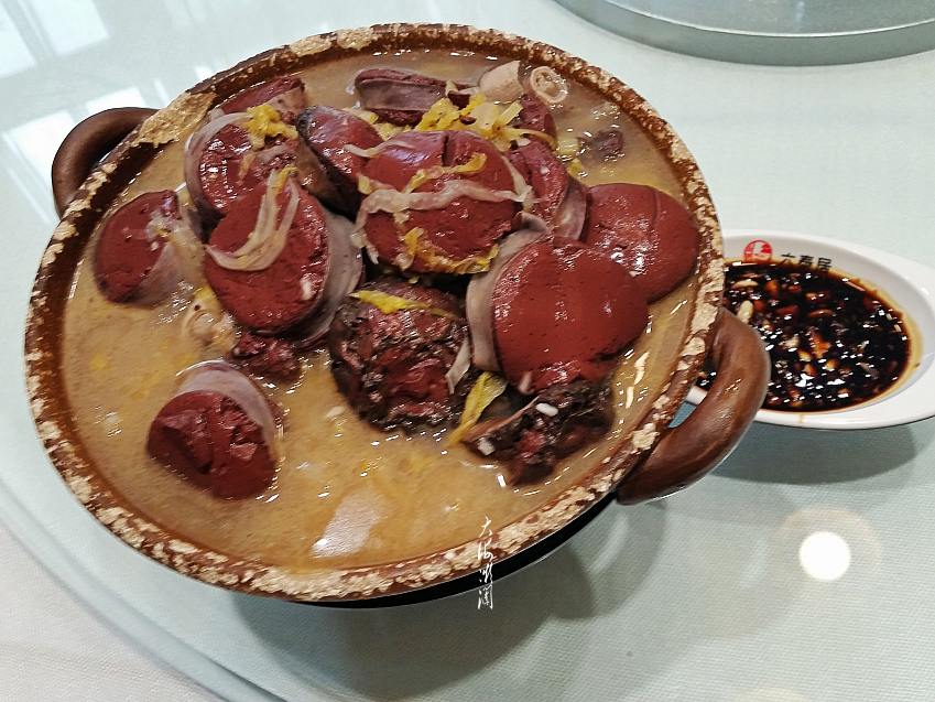 【杀猪菜】东北的杀猪菜很有名气,东北人都喜欢吃,所以一般的饭店都有这道菜,杀猪菜里边一般主要包括血肠、肥肉和酸菜,有的饭店还会有猪肝,不过很少,这道菜血肠很多,也很鲜嫩,酸菜味道很纯正,肥肉没有几片,味道不错,是那种标准的东北菜。