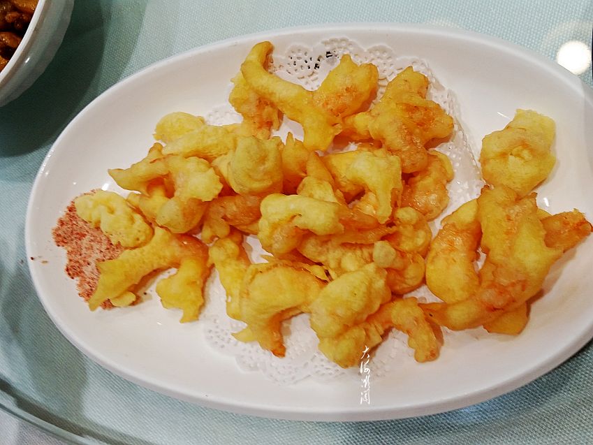 【软炸虾仁】软炸虾仁外酥里嫩,蘸椒盐吃,味道真不错,而且虾仁很鲜,口感软嫩,特受欢迎的一道菜。