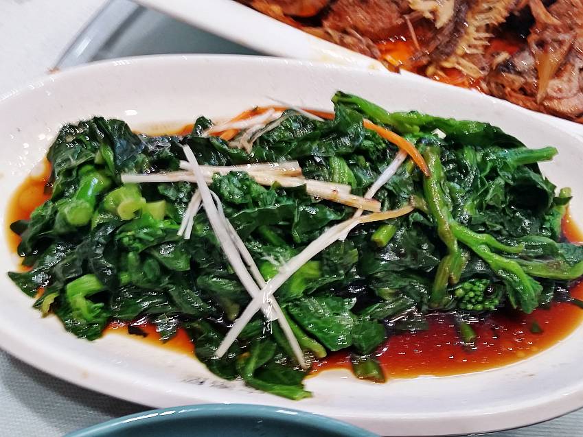 【白灼西生菜】点的是白灼西生菜,上来的就这菜,感觉不是生菜,像是红薯苗还是什么菜苗,还不错,挺清淡爽口的,味到挺好,也没计较,毕竟那个中午饭店人很多。