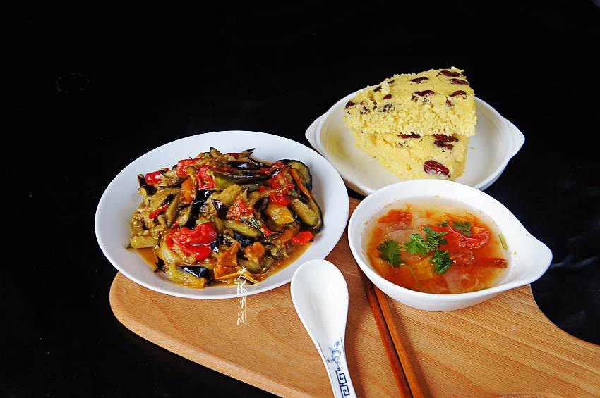 您是不是也和我一样,有些时候剩下一个人根本不想做饭,甚至庆幸一个人可以不吃饭,免得减肥了,或者随便对付一点吃的,不饿就好。通常都是家中有啥吃点啥,不会特意去做饭,难得清闲。不过有时候也会碰到这种比较尴尬的情况,想吃的东西没有了,剩下的也许弃之可惜,食之乏味,碰到这种情况要么出去觅食,要么自己动手。今天给大家分享的就是一个人的午餐,自己动手,丰衣足食。家里只有一大块玉米面发糕,这发糕刚出锅时最爱吃,没有菜也能吃掉一大块,剩下的就没有那么大的诱惑力,不搭配点菜还真吃不下。看看家里还有茄子和番茄,前一天剩下的半截老黄瓜,于是下厨来道快手菜——鱼香茄条,顺便煮个番茄老黄瓜汤,玉米面发糕切开微波炉转上几十秒,Ok啦!前后也不到20分钟,这搭配真不错,鱼香茄条香而不腻,老黄瓜番茄汤,清淡爽口,开胃下饭,粗粮加素食,一菜一汤一块糕,无需减肥,这么吃根本不长肉,这个午餐妥妥的啦,一个人的午餐简单还有滋有味。