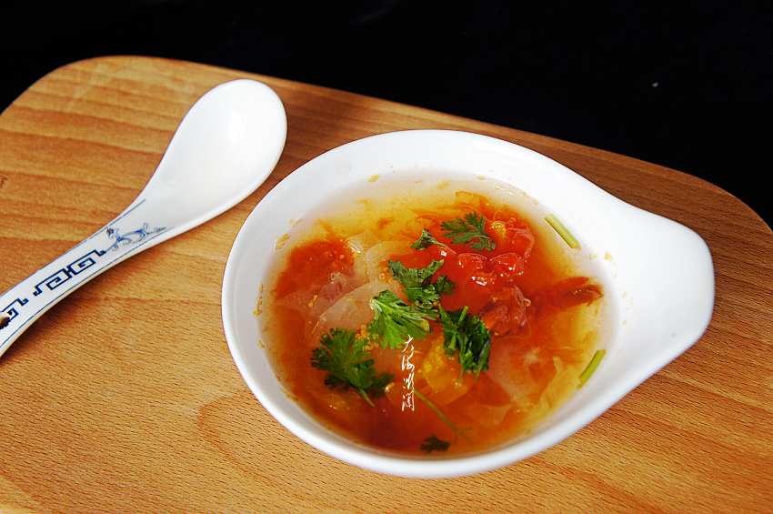 【一汤——老黄瓜番茄汤】这道老黄瓜番茄汤,做法非常简单,番茄和老黄瓜切片一起入锅煮,煮至番茄融化,老黄瓜片透明就OK了,加入盐、糖、胡椒粉调味,喜欢的可以加点香油和鸡粉,我比较喜欢清淡的口味,没加,最后撒点香菜碎,无油,清淡爽口,开胃下饭。老黄瓜的营养价值不比嫩黄瓜差,因为老黄瓜富含的是细纤维素,能促进肠中腐败食物的排泄和降低胆固醇的浓度。所含的丙醇二酸,可抑制糖类转化为脂肪,有助于减肥。所含的维生素E,能够起到延年益寿、抵抗衰老的作用。