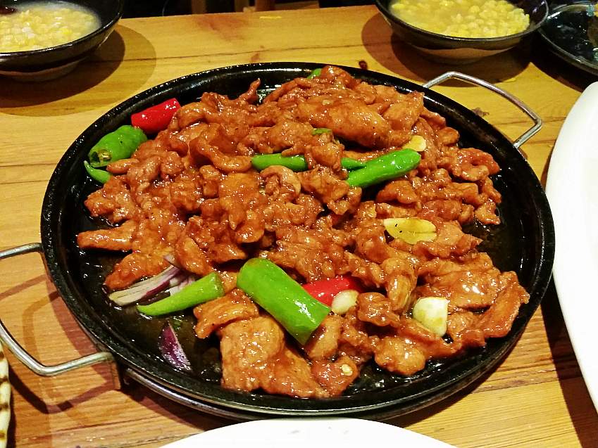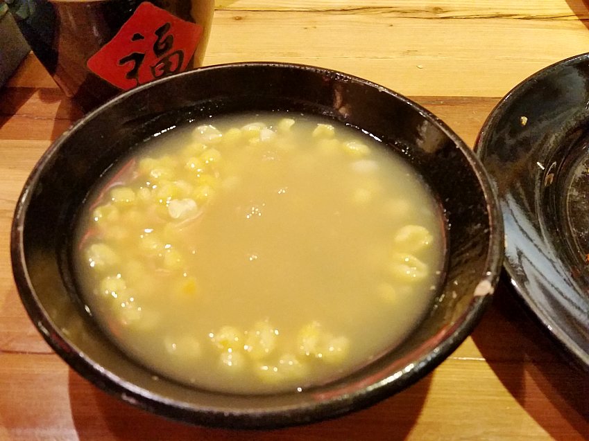 【大碴子粥】赠送的,有汤有饭,难怪服务员不建议点汤,大碴子煮的非常软烂,东北人多豪爽,大渣粥随便吃,不过吃掉那么多菜,这粥也就喝掉一小碗。