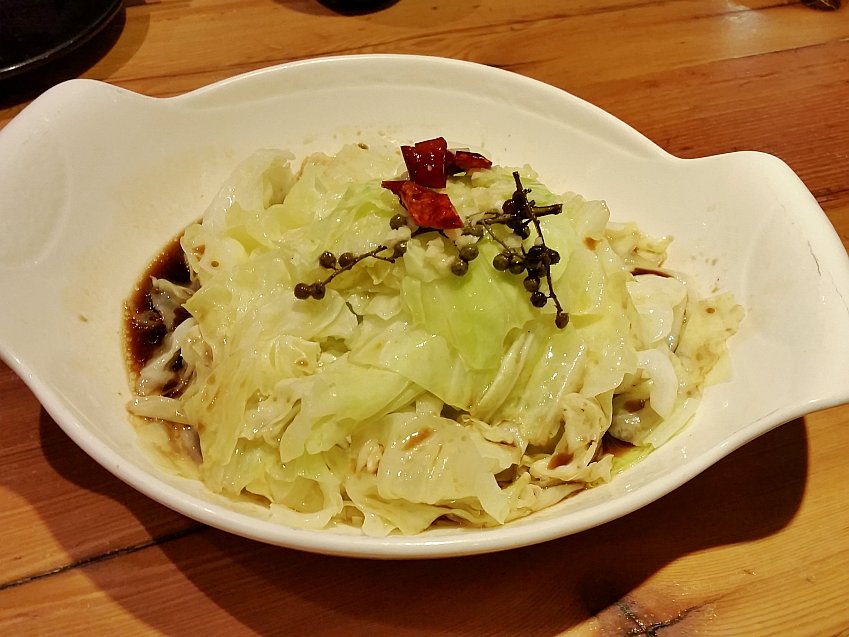 【椒麻油橄榄菜】很清淡爽口的一道菜,麻油味很香,口感脆爽,解腻下饭,比较受青睐的一道菜,也被吃光了。