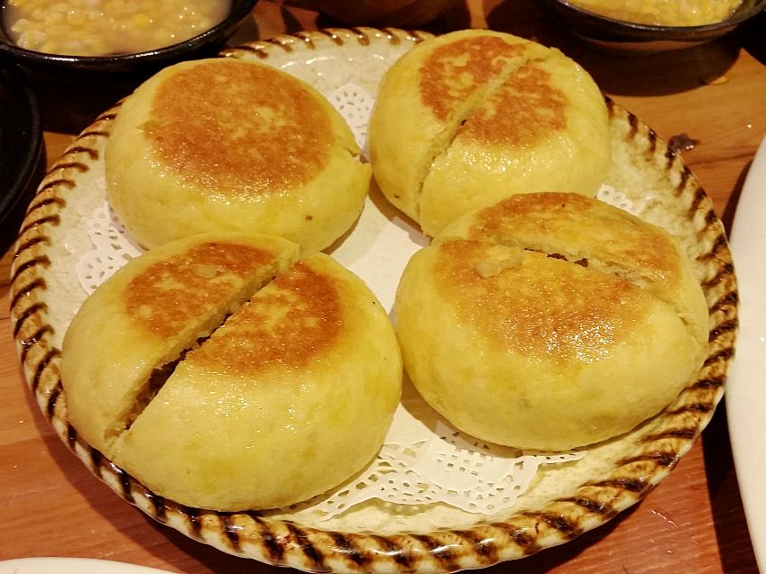 【特色菜团子】12元/例;这菜团子做的很有特色,素馅,而且是素酸菜馅,想起儿时的味道,难得,酸菜馅还能做的如此好吃,我们这一代人都爱吃,没吃完被我打包回家。
