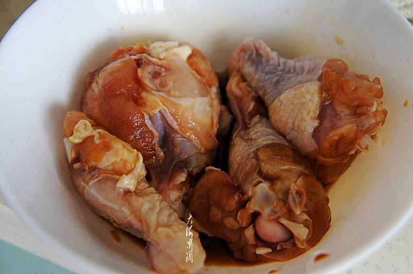 1、鸡翅根提前腌制一下更入味,调味料不要加太多,之后直接用来炖豆角;