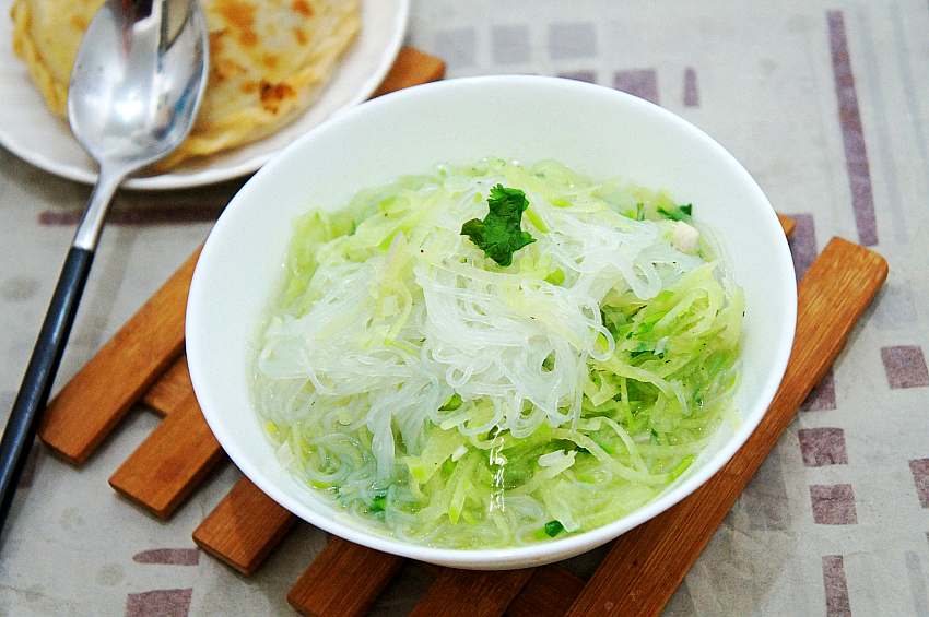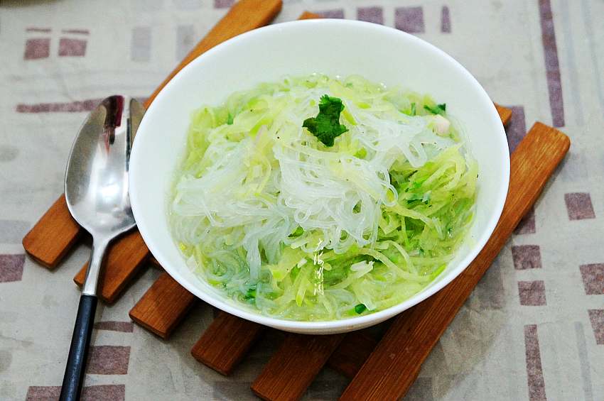 前几天和朋友逛街,逛累了走进一家小店休息就餐,2人点了两菜一汤,菜品不错,就是这汤太腻了,两个人愣是没喝下去,餐桌上就想起老妈做的萝卜条粉丝汤了,给朋友介绍了半天,那才是真正的减肥汤,一滴油都不放,清蛋爽口,每次煮一锅都不够吃,我一人就能喝一大碗,快手菜,好吃不长肉,越吃越苗条。