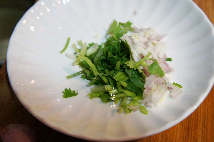 7、毛葱去皮洗净切碎,香菜洗净切碎;