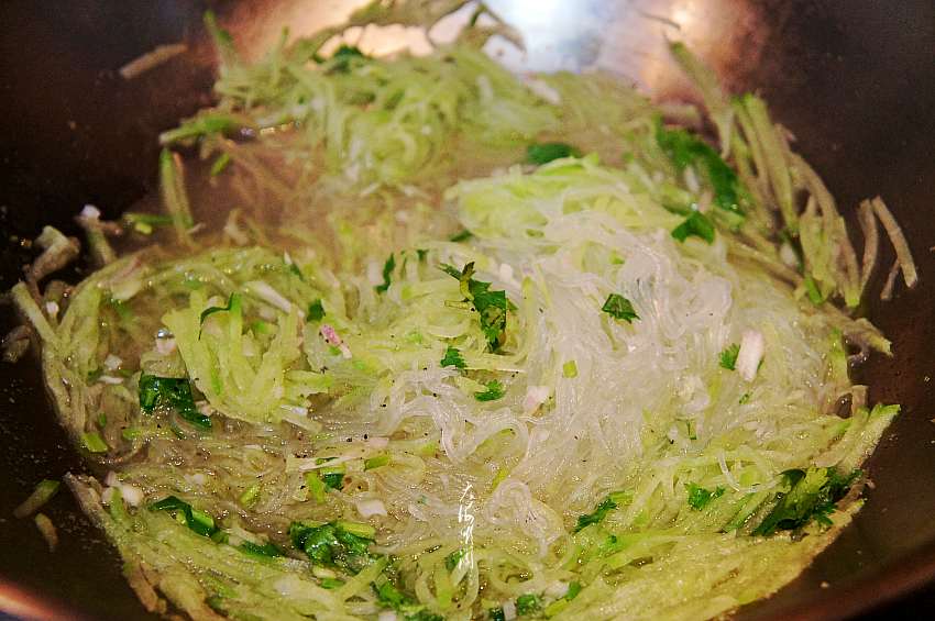 6、注意观察,粉丝完全变软透明就关火,别煮过了,粘成一坨就没法吃了;