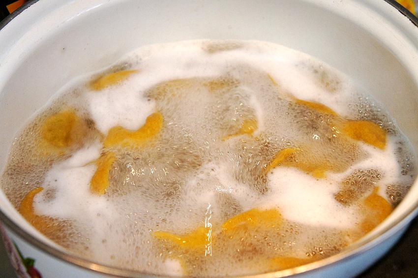 8、煮饺子:锅中加入适量的水,水开下入饺子,煮开浇些冷水,再煮开再浇一次冷水,第三次煮开出锅,饺子煮的恰到好处