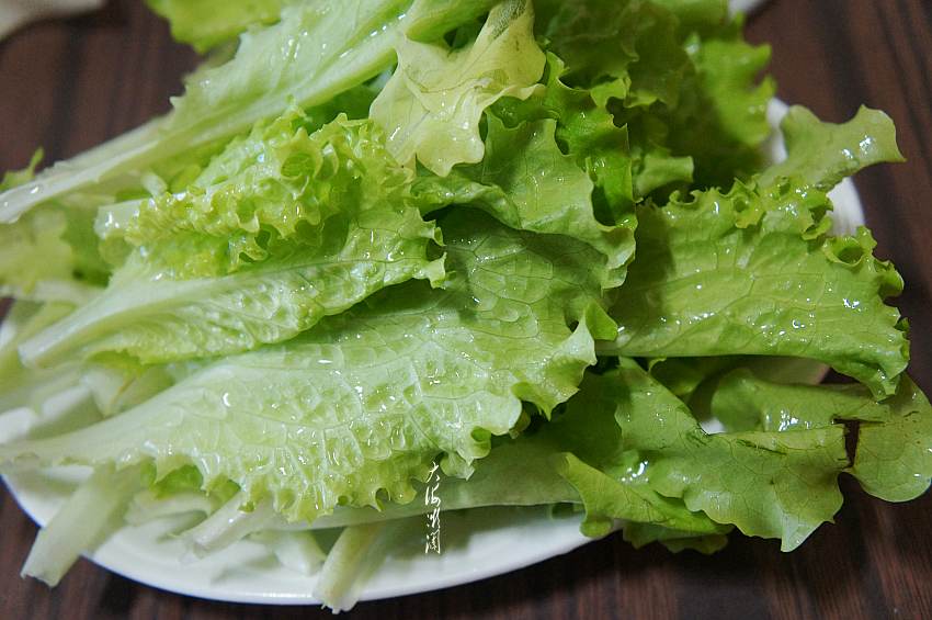 做法:1、生菜一片片叶子掰开,洗净后沥干水分。这是姐家自己种的秋生菜,特别脆嫩爽口;