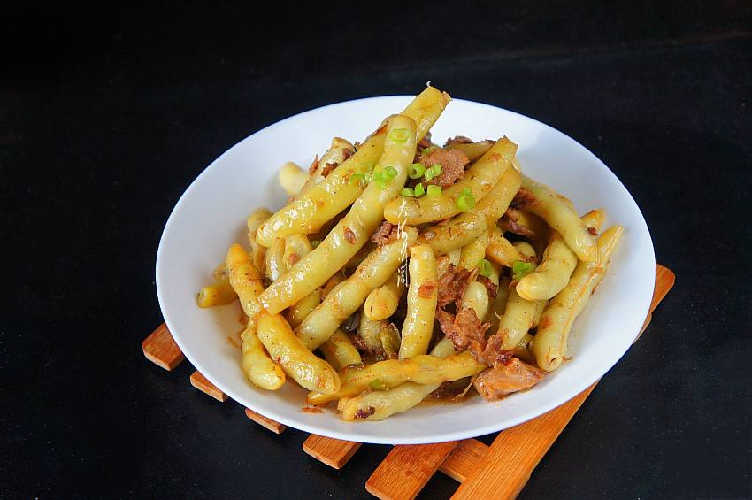 做法:1、黄豆角掐头去尾,摘掉两边的筋膜,这个豆角基本没有筋膜,反复冲洗干净;