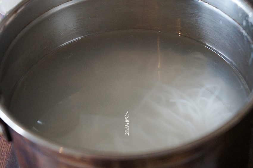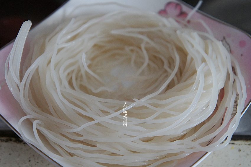2、经过冷水浸泡的米线可以随自己喜欢的口味添加配料。