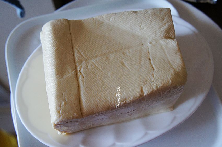 做法:1、买回来的水豆腐,本地大多是卤水豆腐,很嫩,用水冲洗一下,控净水分;