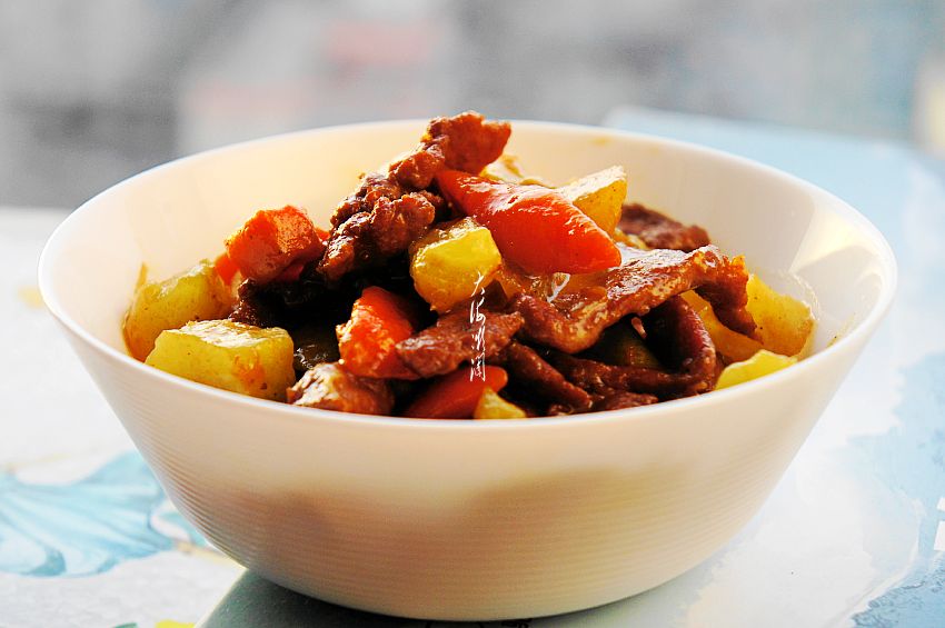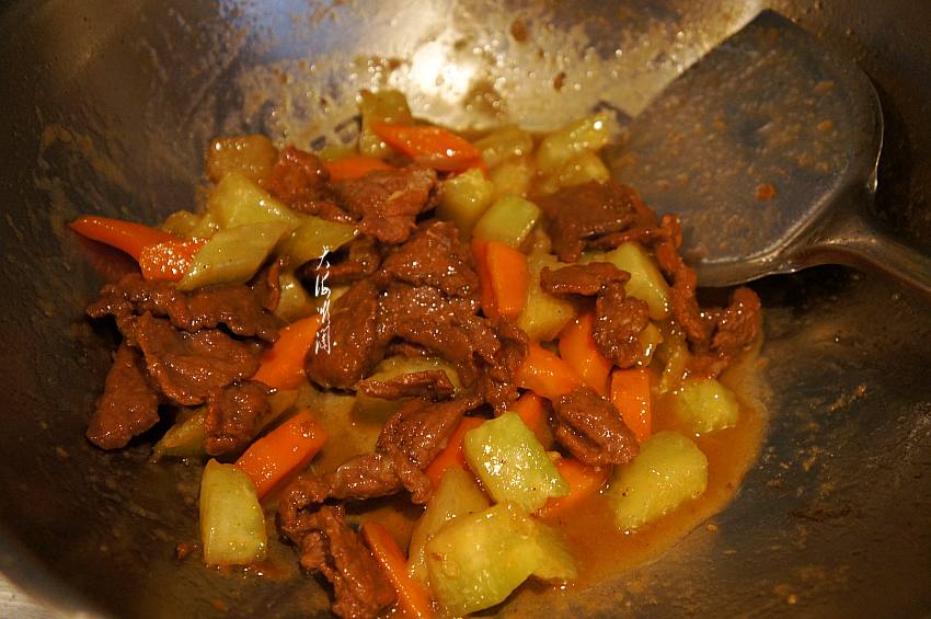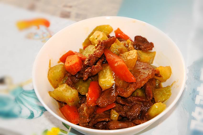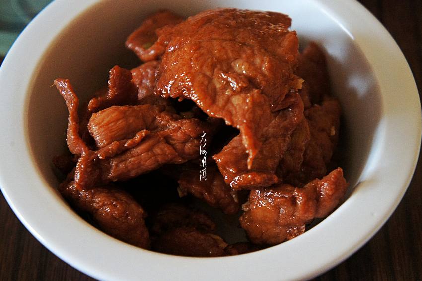 3、备好的牛肉(之前腌制并炒好的牛肉)