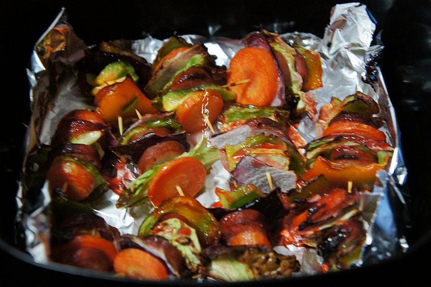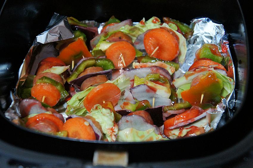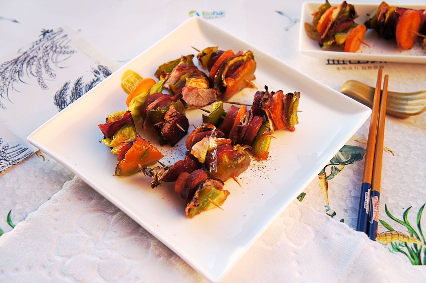 烤串人人都喜欢,尤其是孩子们的大爱,但是常常被不健康的吃法罩上阴影,不管孩子们如何想吃,为了孩子的健康,家长总是以各种理由让孩子们远离烤串,今天你可以放心的跟着小编一起做啦,这烤串做法极其简单,只需一点点的油,口感不输炭火烤串,而且吃的健康,食材随意搭配,有荤有素最好,完全素菜也行,适合自己的口味就是最好的。小编今天只用了几种蔬菜,搭配德式黑椒牛肉肠,主料是牛肉肠,大雪时节吃它即滋补又能提高免疫力,而且味道纯正,肉质细腻,没有添加剂,孩子吃的放心。其他配菜选择了青椒、胡萝卜、紫皮儿洋葱和绿甘蓝菜,是孩子们喜爱的配菜,把他们搭配一起串起来,刷上你喜欢的各种烤酱,空气炸锅转上十几分钟就OK了,出锅如果喜欢黑椒的味道再撒上点黑胡椒粉,味蕾的享受,完美!做法是不是超简单呢!