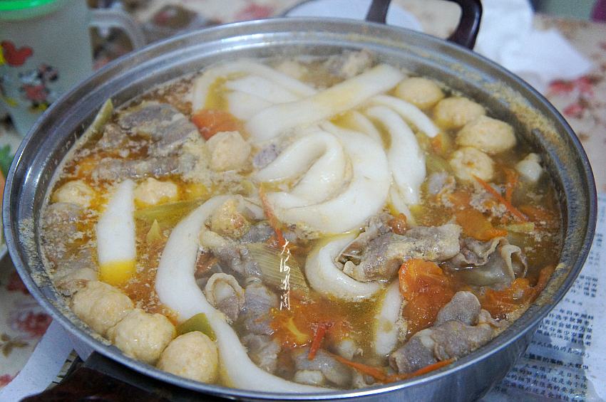 5、非常棒的火锅底料就做好了,好吃不腻,倒入火锅中,开大火,接下来就可以下入耐煮的配料,比如鸡肉丸、宽粉条等,煮开便可以开餐啦。然后根据自己的喜好下入羊肉、蔬菜,其实涮火锅没有先后顺序,自家吃喜欢吃啥就入锅涮啥,边煮边吃,最后再来点手擀面,真是好吃到撑。