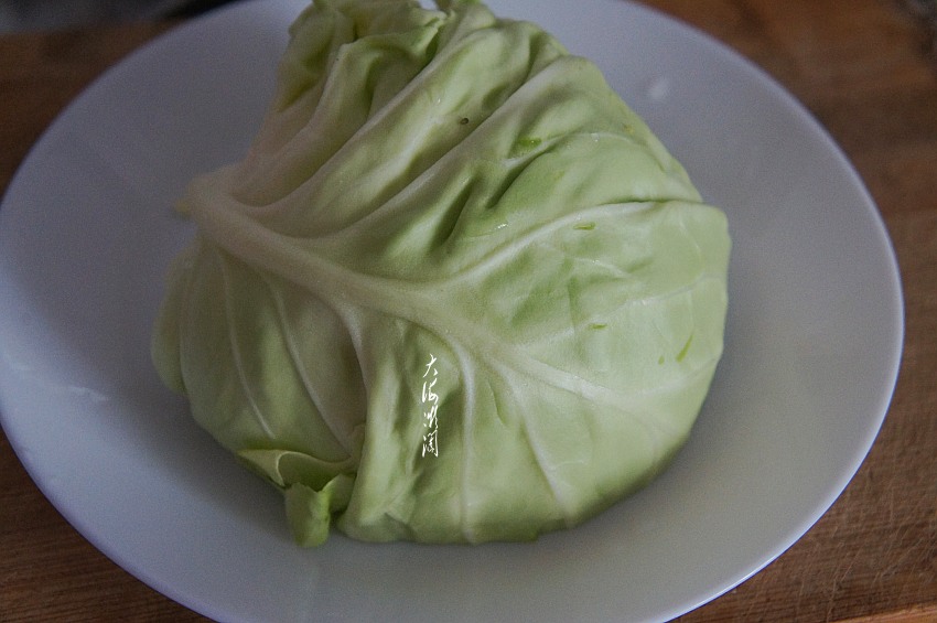 做法:1、甘蓝菜洗净,因为甘蓝菜很紧实,而且特别脆嫩,一片一片分开也不易,我是切开后再洗;