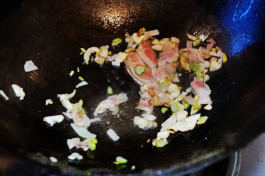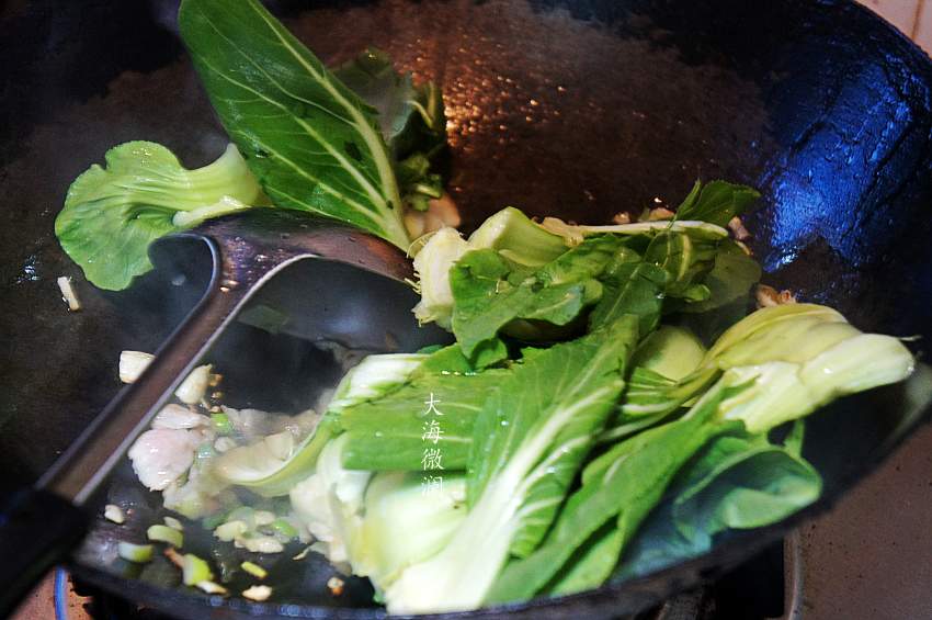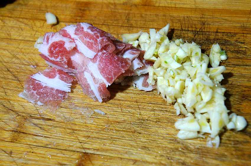 3、调味用的大蒜可以全部入锅翻炒,也可以留一部分最后洒在上边,蒜香更浓郁,还能起到杀菌的作用。