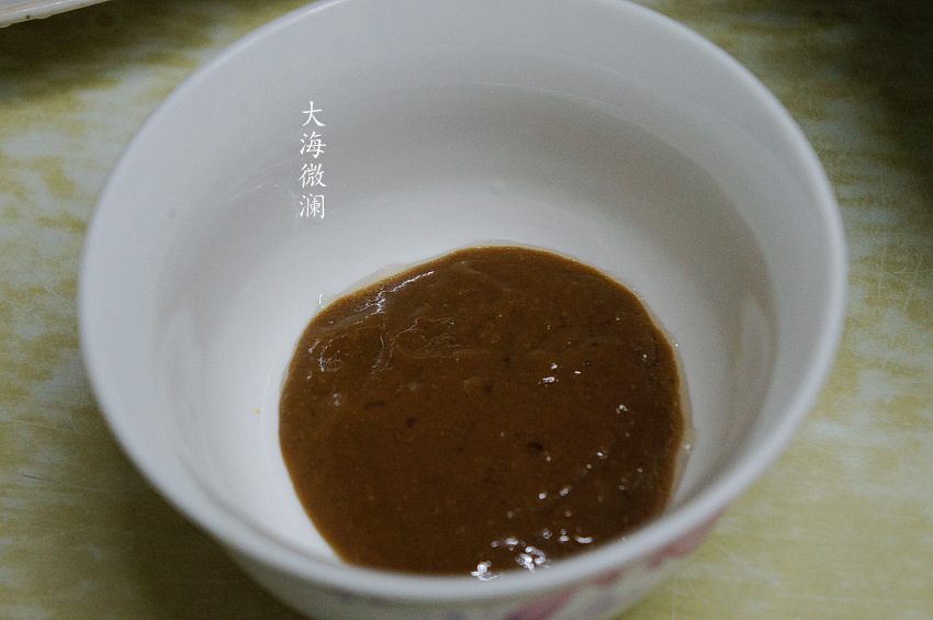 8、买来现成的蘸料,也可以自己用芝麻酱、韭菜花、腐乳调成蘸料;