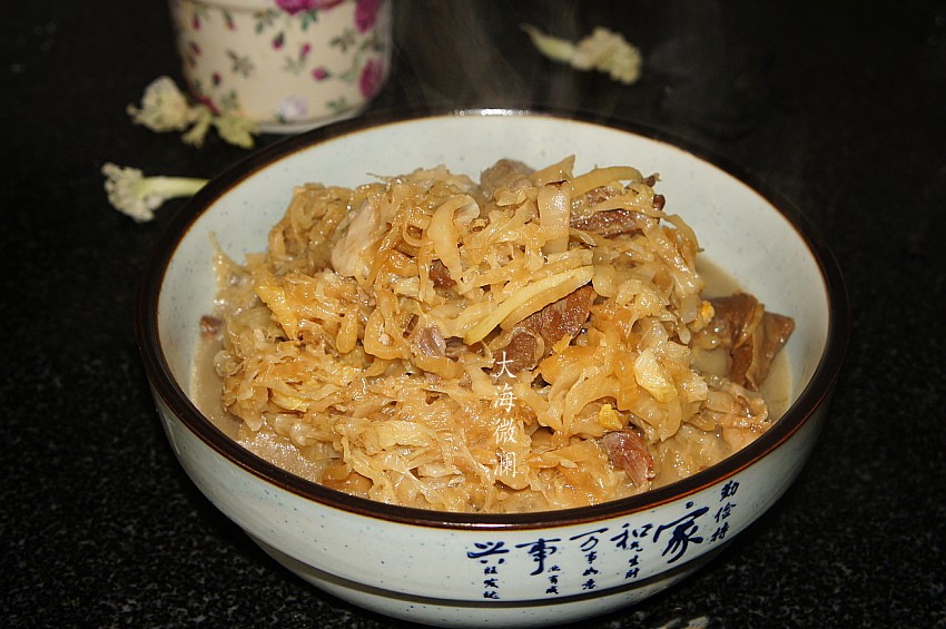 11、炖好的羊肉酸菜,不用收汁,可以喝汤,酸爽开胃,汤汁泡饭特香;