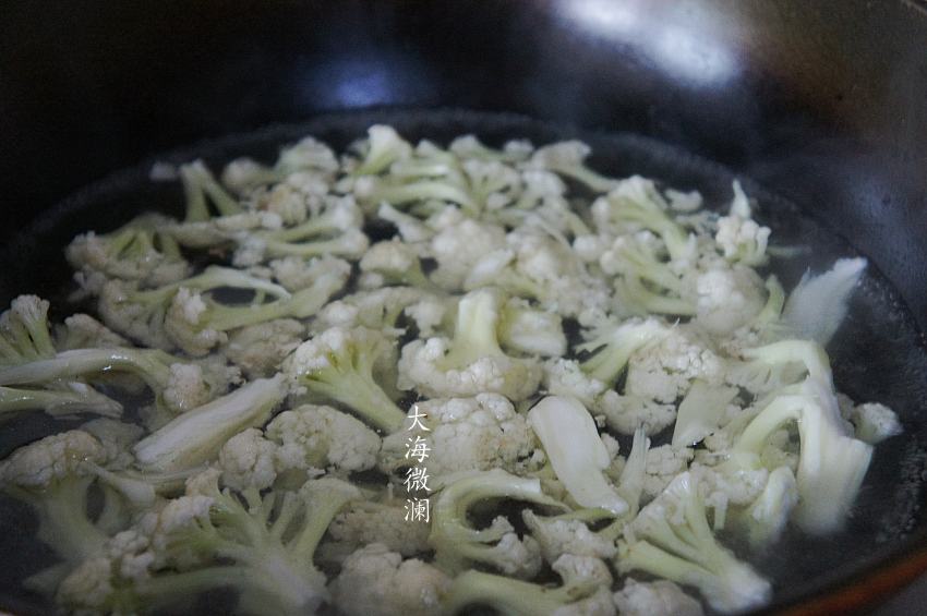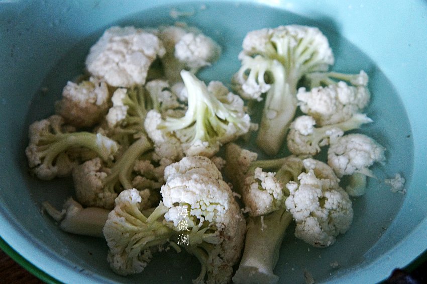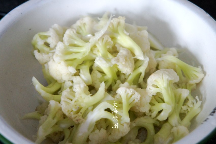 做法:1、菜花掰成小朵,淡盐水中浸泡10分钟,再反复清洗干净;