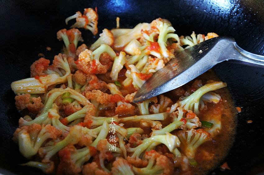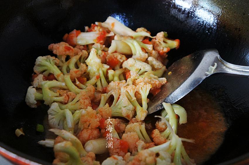 炒菜花可谓是一道非常美味的家常菜,每次做这菜,就想起妈妈的味道,妈妈的做法极其简单,没有更多的调味料,只是搭配了番茄,就让这道菜有滋有味,酸甜适口,汤汁泡饭太好吃了,老人孩子抢着吃。菜花可是最好的食材,肉质细嫩,味甘鲜美,食用后很容易消化吸收。在推荐的10大健康食品中名列第四名,富含蛋白质、脂肪、碳水化合物、食物纤维、维生素及矿物质。丰富的维生素C含量,不但有利于人的生长发育,更重要的是能提高人体免疫功能,促进肝脏解毒,增强抗病能力,提高机体的免疫力。所含的抗氧化微量元素,在防治胃癌、乳腺癌及直肠癌方面效果尤佳。菜花是含有类黄酮最多的食物之一,类黄酮除了可以防止感染,还是最好的血管清理剂,能够阻止胆固醇氧化,防止血小板凝结成块,因而减少心脏病与中风的危险。菜花物美价廉,适合所有人群,老人孩子更要多吃。