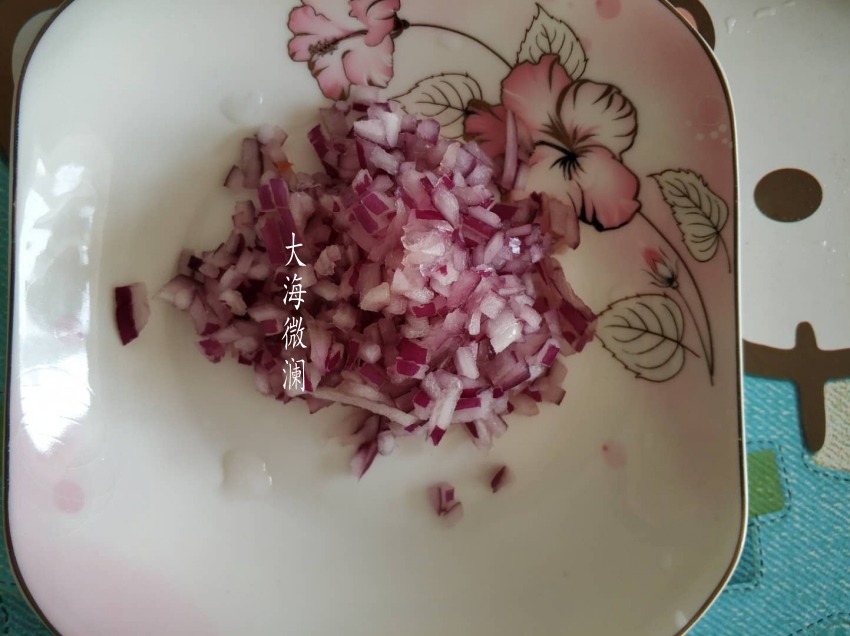 做法:1、准备好食材,洋葱去皮洗净切碎,切洋葱时特别容易刺激眼睛,可以在切洋葱之前把洋葱放在冷水里浸一会儿,把刀也浸湿,再切就不会流眼泪了;