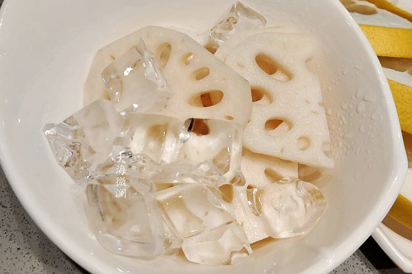 【藕片(半份)】最先下锅的是藕片,我喜欢煮的时间长一点,软软的口感特别好吃,当然也可以是脆嫩的口感,就随个人喜欢吧。