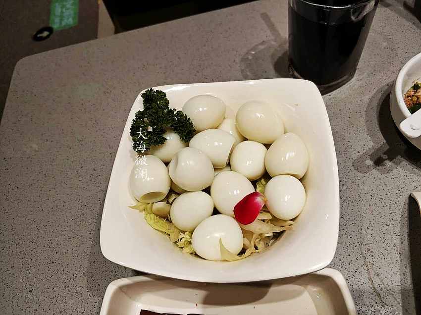 【鹌鹑蛋(半份)】既是主食也是菜,涮火锅很有感觉,幸亏只要了半份,整份光吃它就饱啦。