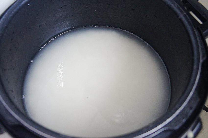 3、大米反复淘洗3次,放入电压力锅中,然后加入适量的水;