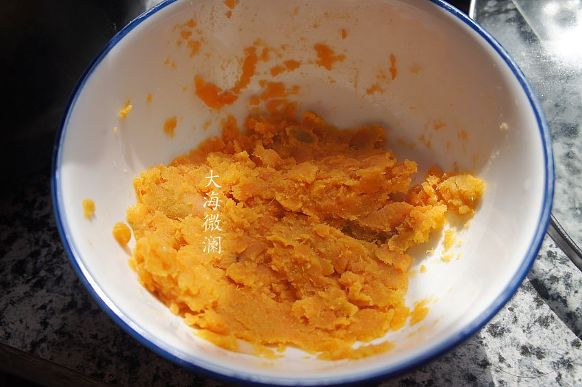2、早上蒸的红薯还剩一个小的,压成红薯泥备用;
