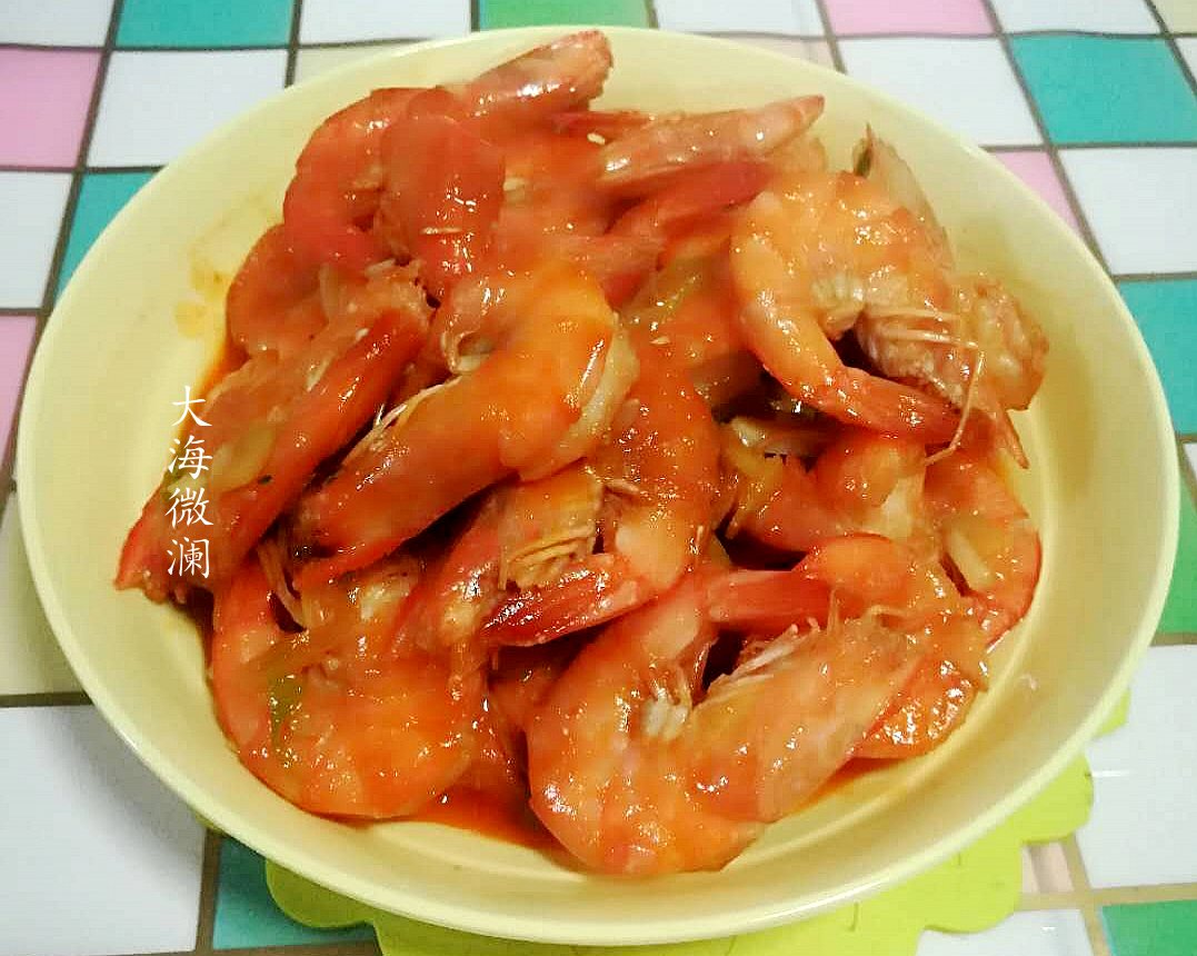 【葱姜炒虾】葱姜炒虾,出锅前再加点番茄酱,别有风味,味道极其鲜美,老人孩子都爱吃。
