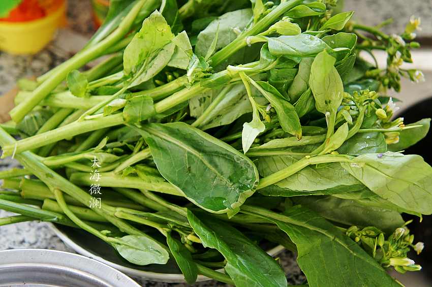这菜叫芥蓝,北方没见过,长寿村这边很多,每个集市都有老人家来卖,2元钱就能买一捆,足够炒一盘菜,可谓是物美价廉。芥蓝的营养价值很高,富含维生素c、维生素b群、胡萝卜素、钙质、叶酸、铁质、钾等多种营养元素。尤其钙含量特别高,是牛奶之外的补钙能手,每100克芥蓝的钙含量高达128毫克,而相同质量的牛奶钙含量为100毫克左右。维生素C含量也是巨高,远远超过苋菜,苋菜曾被认为是维生素C含量最高的蔬菜。所含独特的芥子油甙,可以形成异硫氰酸,发挥超强的解毒、排毒功效。节日期间适量吃些芥蓝,有益调理脾胃,清热解毒。芥蓝中含有丰富的硫代葡萄糖苷,它的降解产物叫萝卜硫素,是迄今为止所发现的蔬菜中最强有力的抗癌成分,经常食用有降低胆固醇,软化血管,预防心脏病的功效。