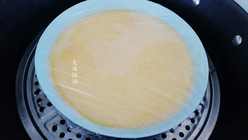 5、盖上保鲜膜,锅中加入适量的水,上屉入锅,水开蒸7到10分钟左右;